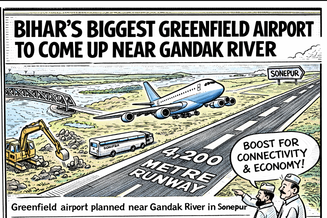 Bihar is set to get its largest greenfield airport near Sonepur, close to the Gandak River, marking a major push in aviation infrastructure. The proposed airport will feature two 4,200-metre-long runways, making it capable of handling wide-body aircraft, including the Airbus A380. Officials said the project site lies between Hajipur and Dumaripar, with land acquisition already sanctioned by the state government.
