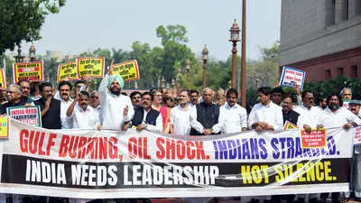 Escalating tensions in West Asia following the US-Iran confrontation sent shockwaves through India on Monday, triggering a sharp fall in stock markets and protests in Parliament. The Sensex plunged over 2,400 points while the Nifty also declined significantly. Opposition leaders criticised the government’s response, as lawmakers raised concerns over economic and geopolitical implications.